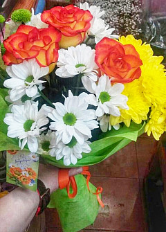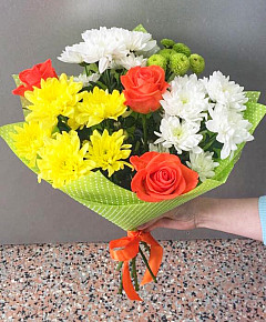 Яркий букет «Мы вместе» в любое время года передаст солнечное весеннее настроение. Розы олицетворяют хорошее, доброе отношение, а хризантемы – лучшие цветы, показывающие дружбу. Их яркие цвета повышают настроение, а композиция запахов придает заряд бодрости на целый день. Букет отлично подойдет для друзей, членов семьи или коллег. Необычный подарок не останется без внимания и о вас еще долго будут говорить в положительном ключе.